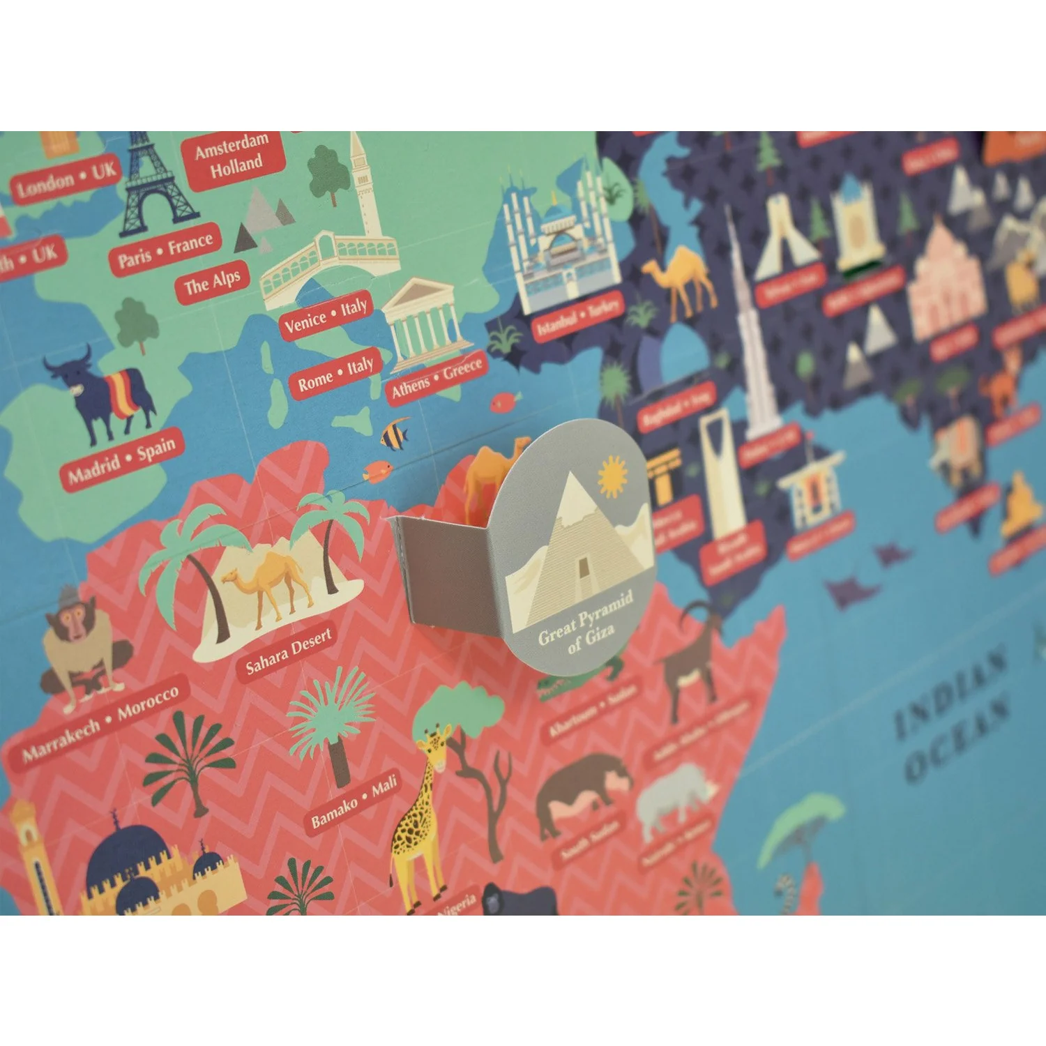 Explore the world with this fun and educational activity pack. Unfurl the giant world world map to start learning about the wonderful world we live in. Follow in the footsteps of famous explorers with the 3D compass, ship, and aeroplane pieces, and match animals and landmarks to their countries of residence.Â
