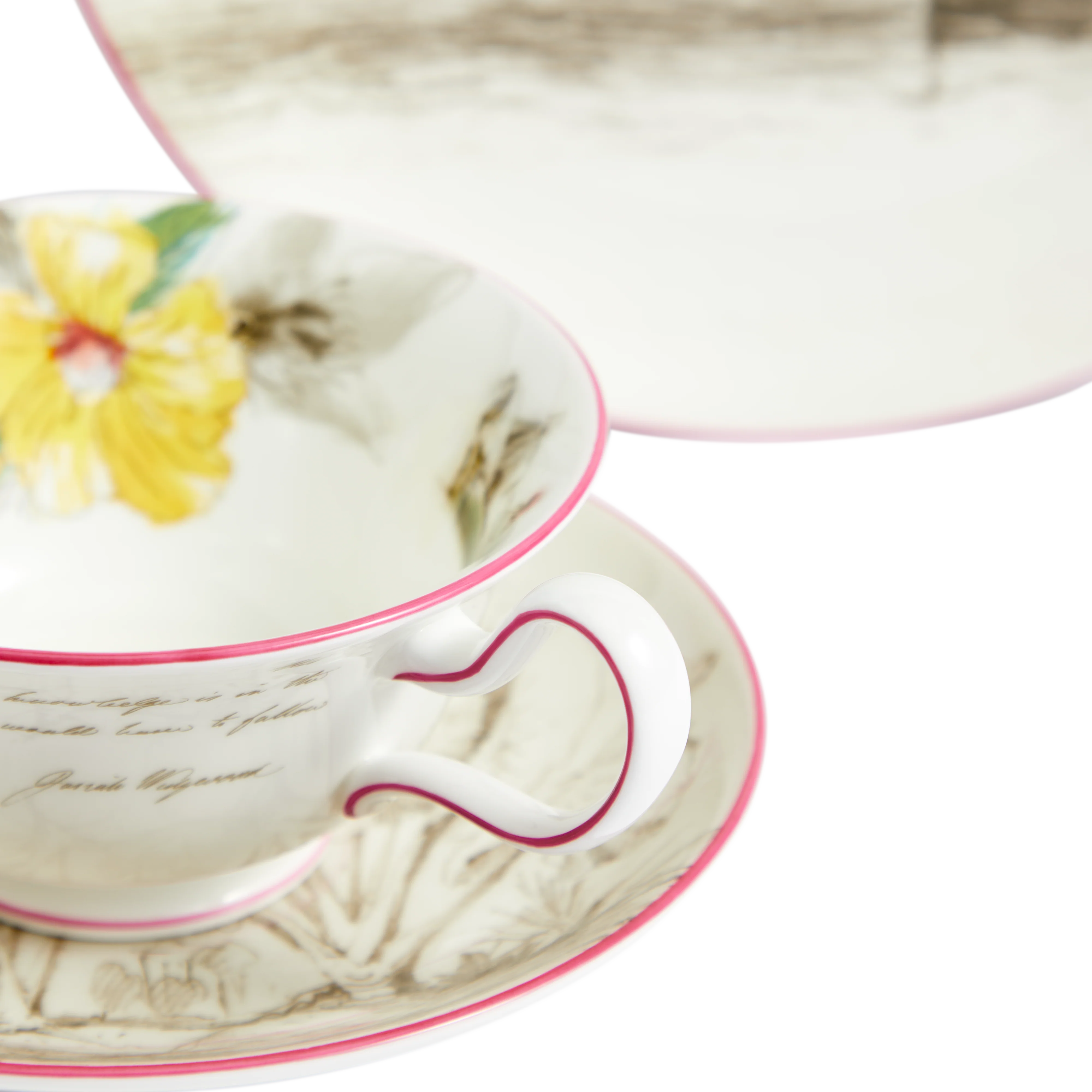 - Set contains: decorated fine bone china tea cup, saucer, and plate