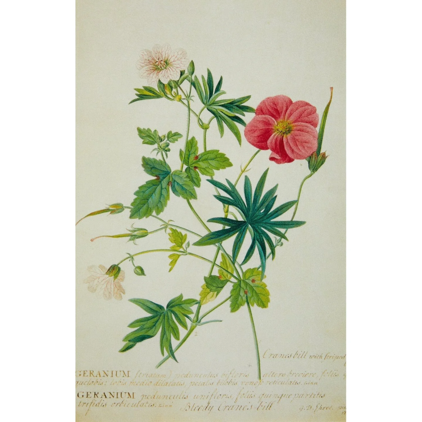 Georg Dionysius Ehret, Two Geraniums; Lathyrus nissolia, Chrysanthemum leucanthemum, Linum perenne, Lysimachia nemorum; and Anonis or Rest Harrow (Crotalaira)